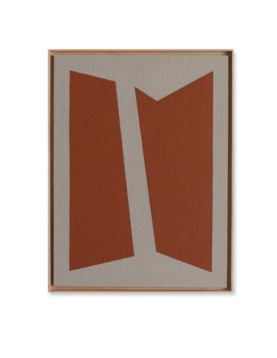 Collage, acrylic paint, and mixed media on linen and banak frame.